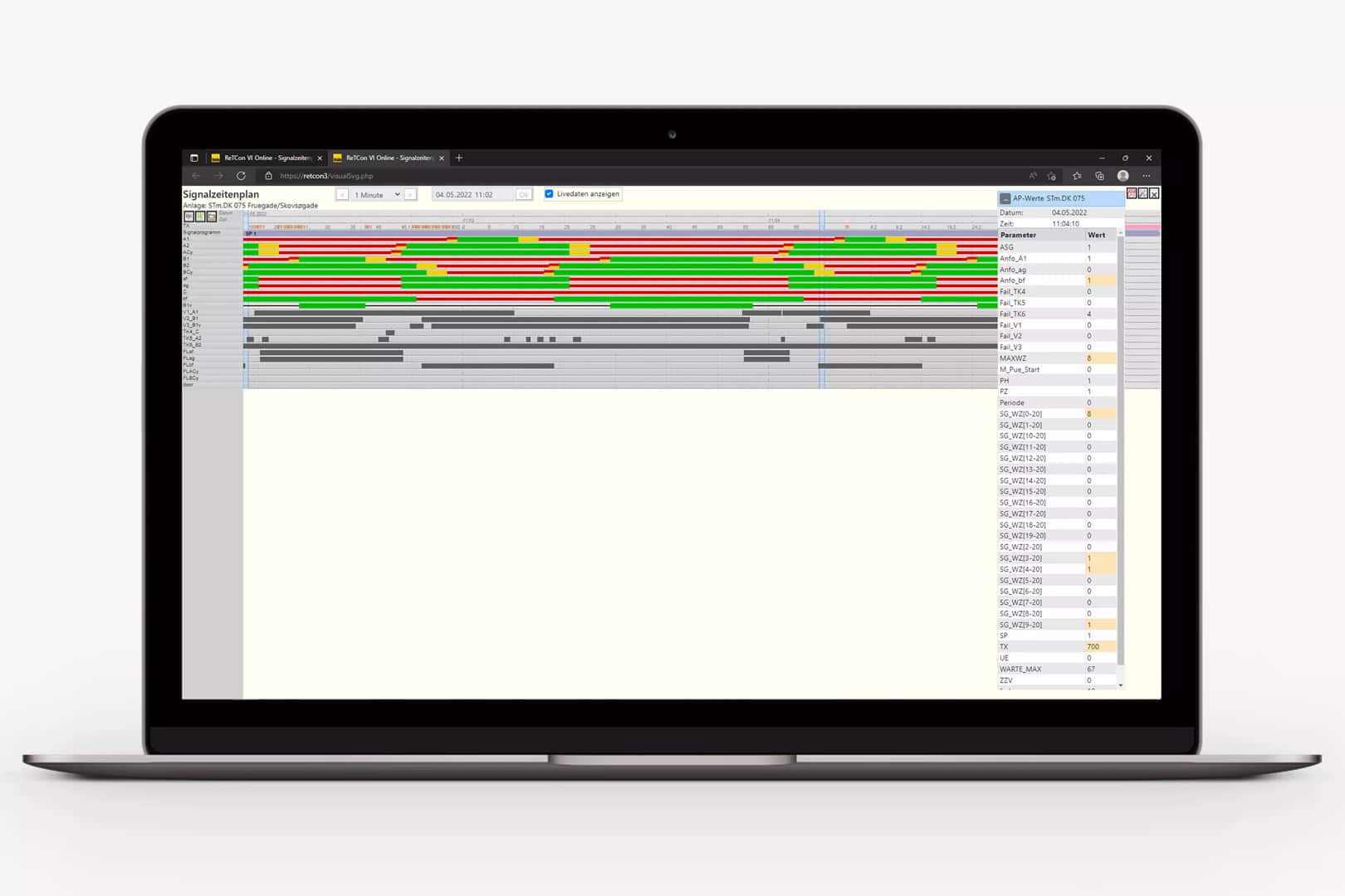 Komplet overvågning af signalanlægget. Med ReTCon Online får brugeren alle de nødvendige oplysninger om driftstatus for de tilsluttede signalanlæg samt evt. uoverensstemmelser.
