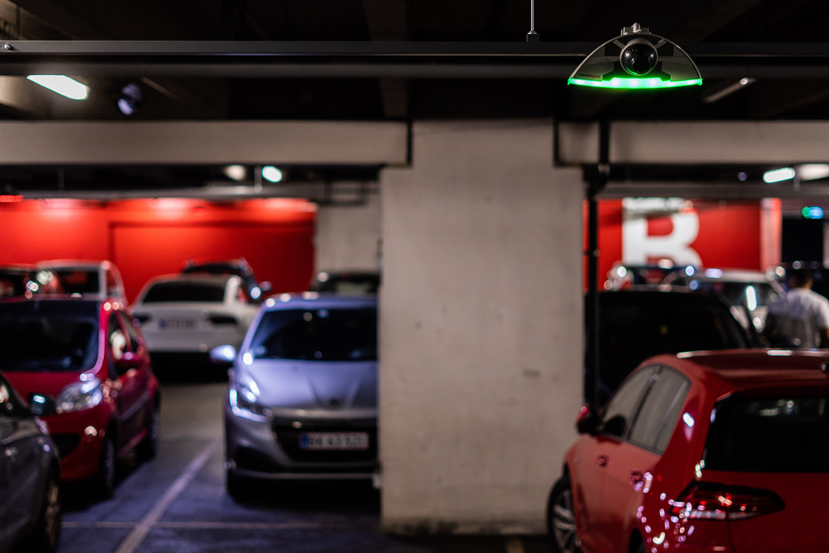 Det kamerabaserede henvisningssystem kan med én enkelt enhed registrere belægning af op til 6 nærliggende pladser – 3 på hver side (ved brug af vores 360° sensor). Reduceret antal lamper = mindre antal udstyr at vedligeholdes