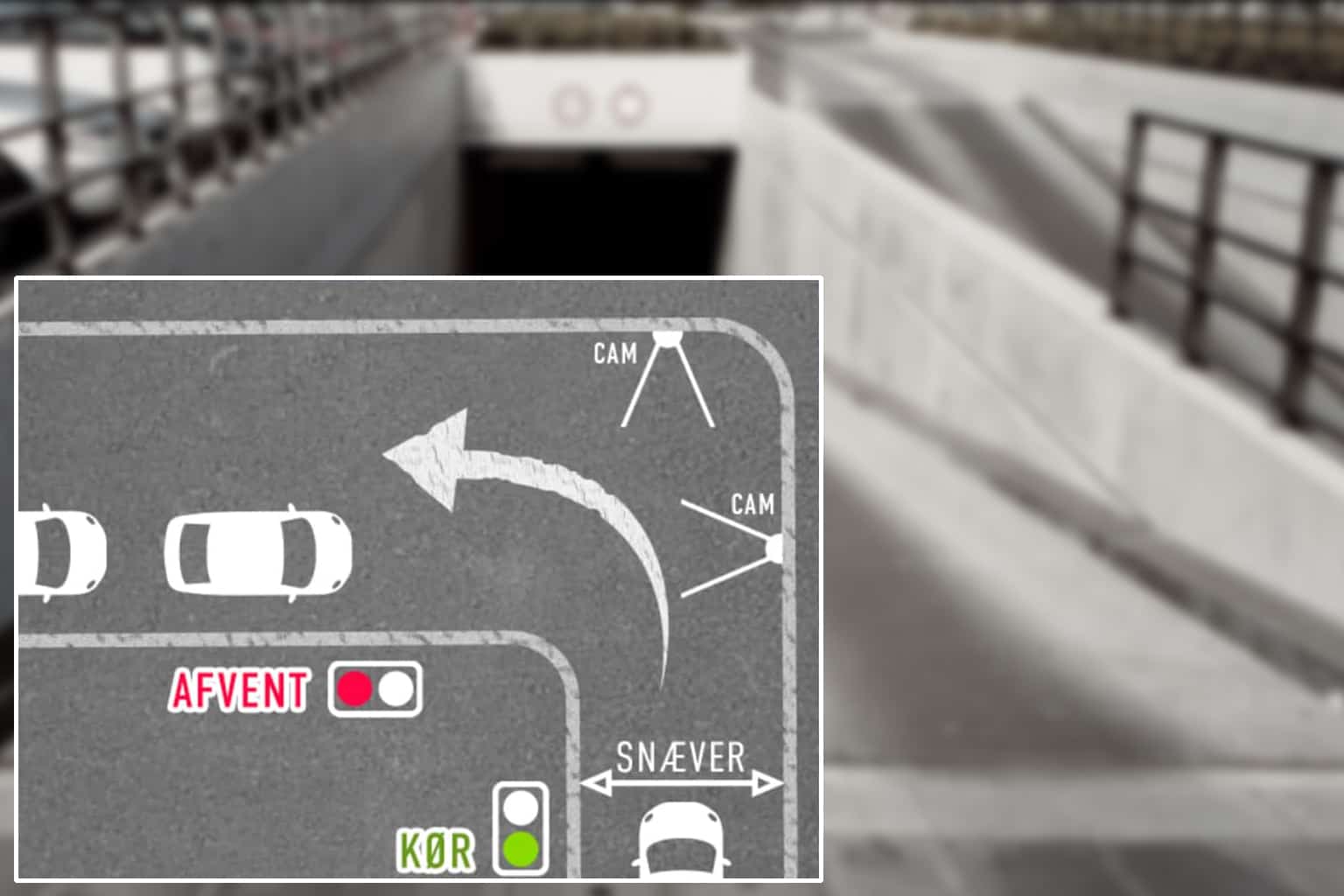 Systemet kan også sende besked til et signalanlæg uden for p-huset for at forberede signalanlægget på trafik fra p-huset.